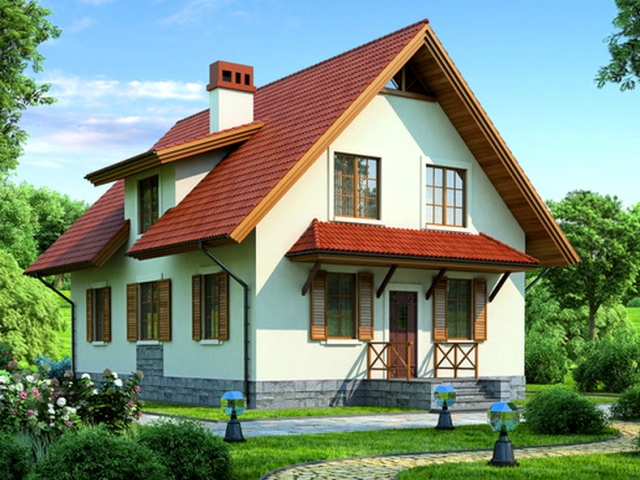 - Дом "Астра" представлен в варианте стороительства из керамзито-бетонных блоков с оштукатуренным фасадом.