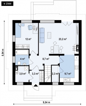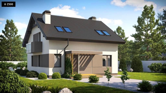 - Дом "Эвритания" представлен в варианте строительства из блоков с оштукатуренным фасадом.