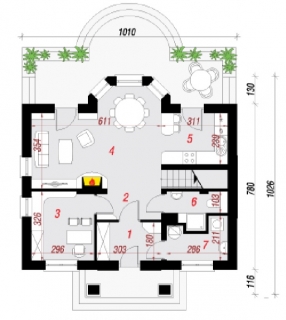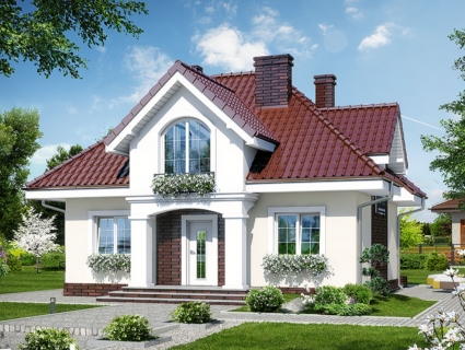 - Дом "Фламенко" представлен в варианте строительства из блоков с мансардным этажом.