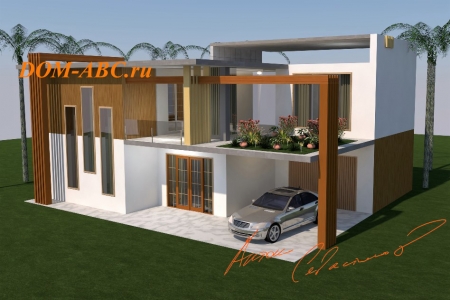 - Дом "Мир" в современном стиле с гаражом и летней таррасой-балконом на втором этаже.