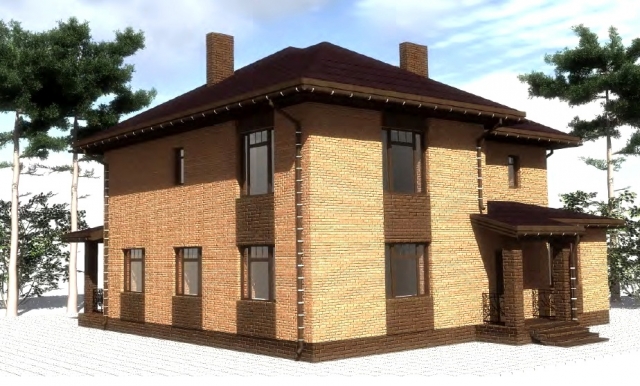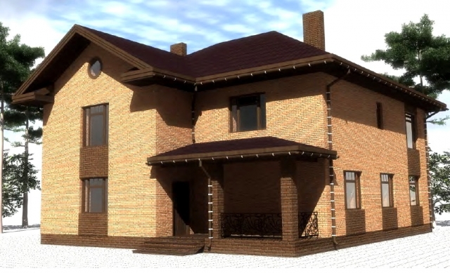 - Дом "Счастье" представлен в варианте строительства из кирпича.