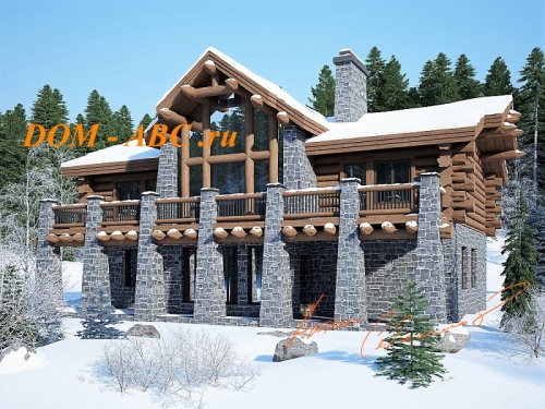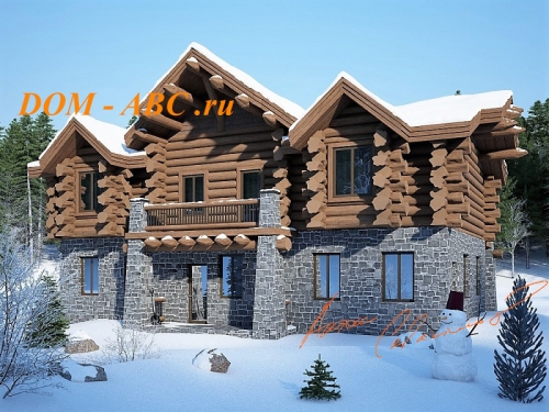 - Это комбинированный дом камень-дерево. Первый этаж по задумке архитектора выполняется из дикого камня, второй - из бревна ручной рубки в диком стиле.