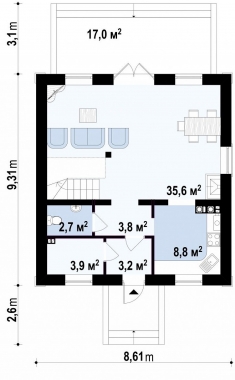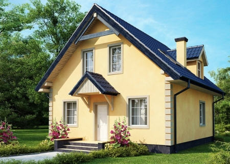 - Дом "Кэжл" представлен в варианте строительства из блоков с оштукатуренным фасадом.