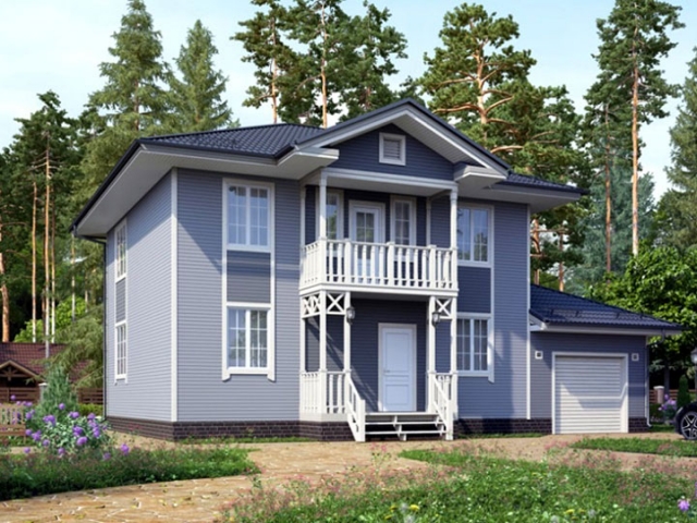 - Дом "Лотос" представлен в варианте стороительства из керамзито-бетонных блоков с облицовкой наружных стен сайдингом.