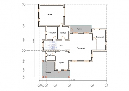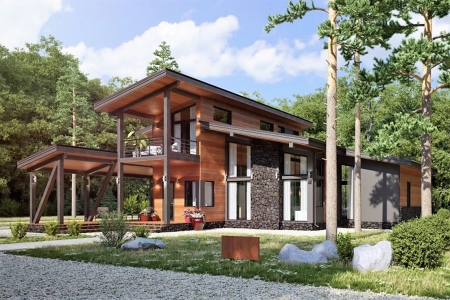 - Дом "Рейкьявик" представлен в варианте строительства комбинации кирпича и бруса.
