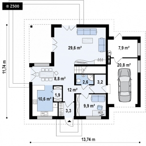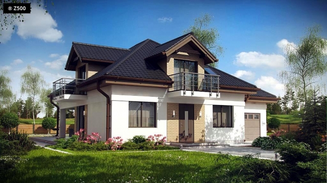 - Дом "Урбан" представлен в варианте строительства из блоков с оштукатуренным фасадом.