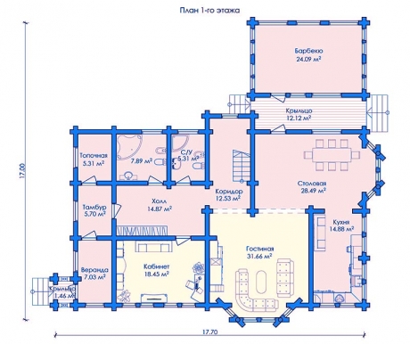 - Дом "Хоромина" представлен в варианте оцилиндрованное бревно из сосны диаметром 240мм.