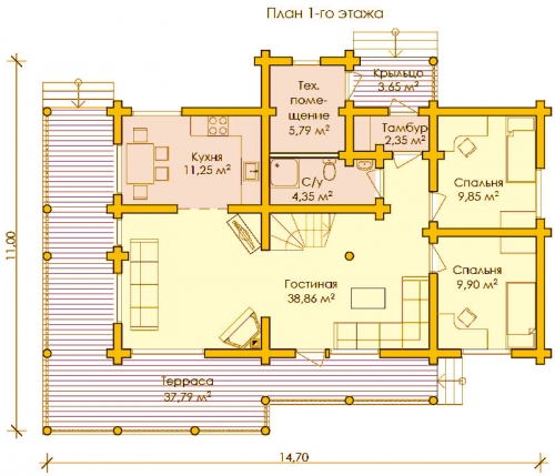 - Дом "Свежесть" представлен в оцилиндрованном бревне из сосны диаметром 240мм.